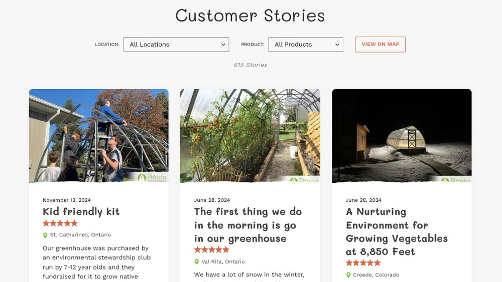 For a greenhouse company, we gathered over 600 stories from happy customers.
