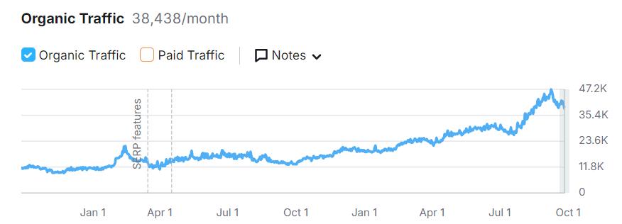 We helped a Shopify store go from 11,000 monthly organic visits to almost 50,000 monthly visitors in under 1 year, by using a custom SEO strategy.